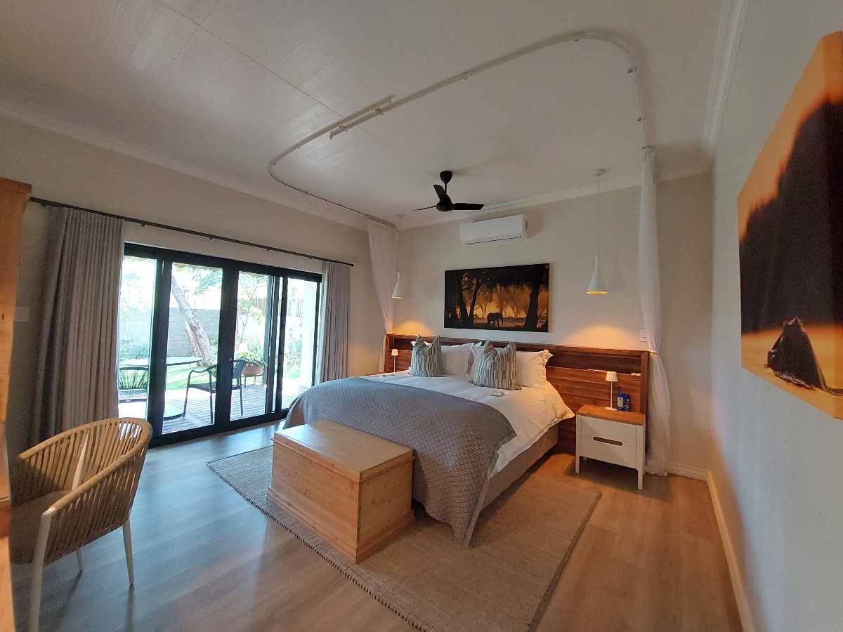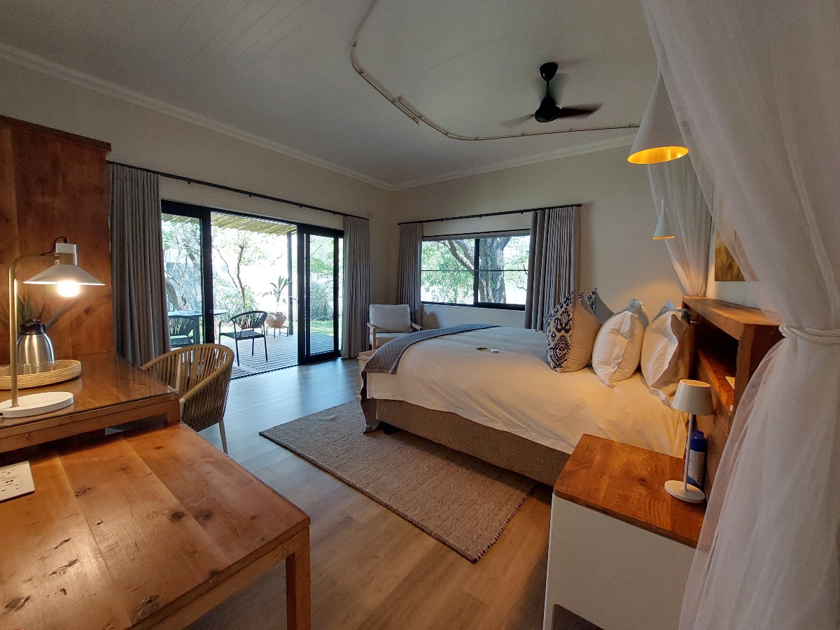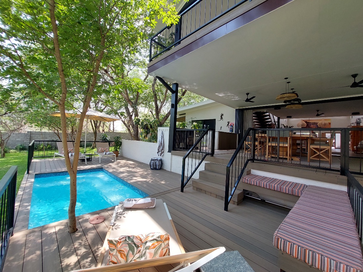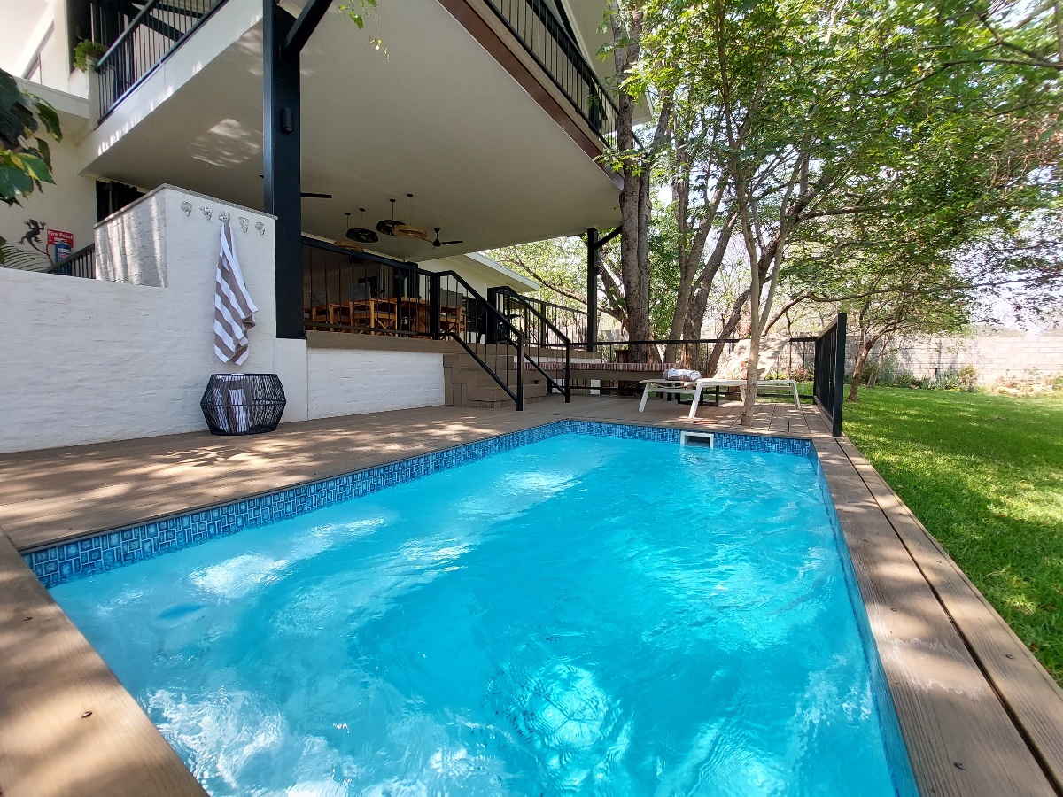 1618 The Falls is a newly built luxury villa situated in a lovely part of the suburbs of Victoria Falls town, only around 4kms from the Falls themselves. From the moment you drive in and see the feature waterfall built into the front of the building – you know this villa is something special, and that a lot of thought has gone in to the entire building. The owners of 1618 specifically built it in amongst the local indigenous trees, taking out as few as possible, and also cleverly built it so it faces east to west, allowing the natural breeze to flow through the villa. Also, most of the furniture and timber used was made from reclaimed pine shelving from an old warehouse that dates back to 1935 and originates from British Columbia.