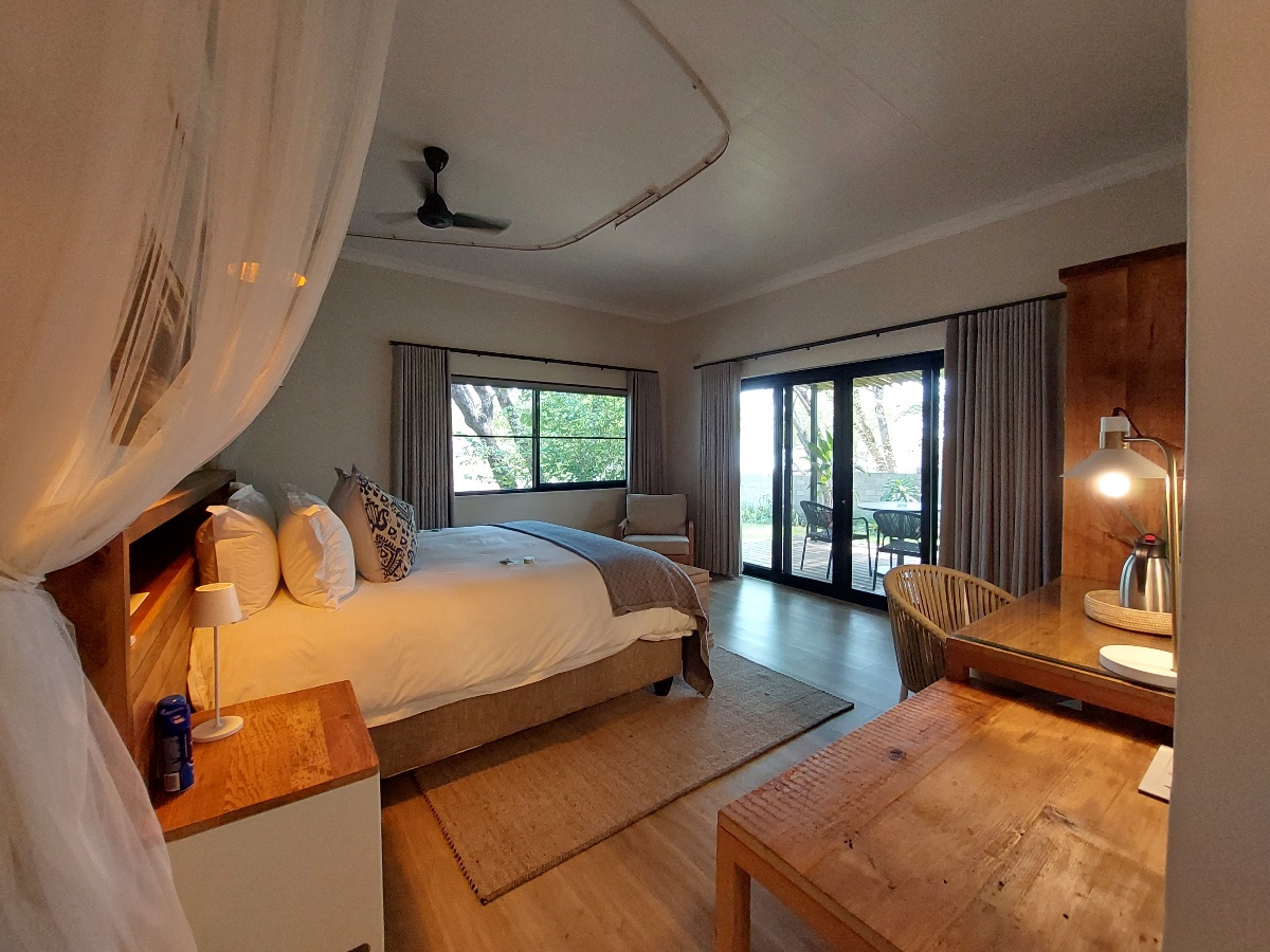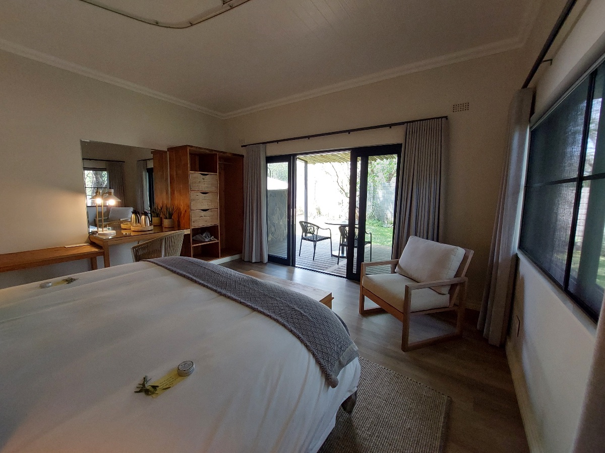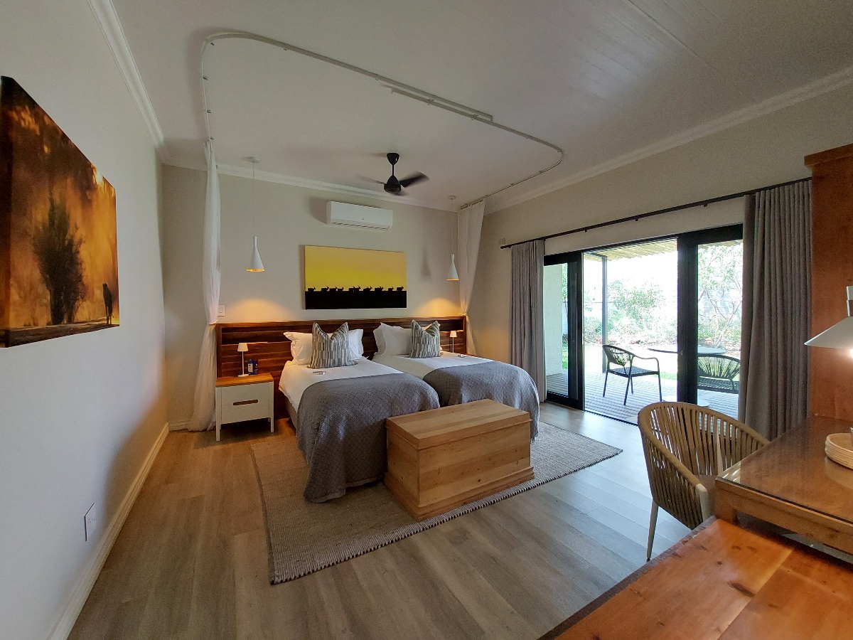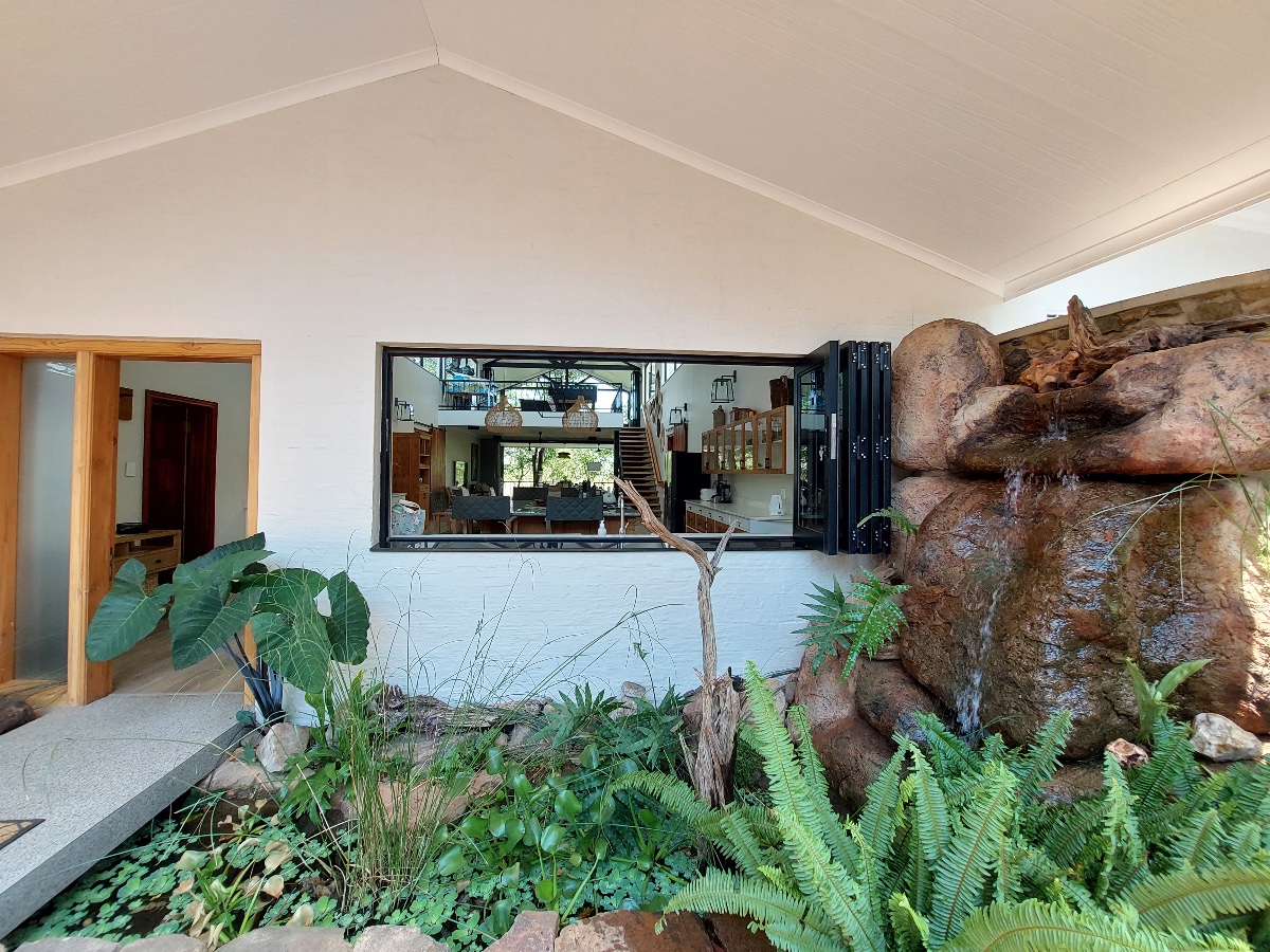1618 The Falls is a newly built luxury villa situated in a lovely part of the suburbs of Victoria Falls town, only around 4kms from the Falls themselves. From the moment you drive in and see the feature waterfall built into the front of the building – you know this villa is something special, and that a lot of thought has gone in to the entire building. The owners of 1618 specifically built it in amongst the local indigenous trees, taking out as few as possible, and also cleverly built it so it faces east to west, allowing the natural breeze to flow through the villa. Also, most of the furniture and timber used was made from reclaimed pine shelving from an old warehouse that dates back to 1935 and originates from British Columbia.