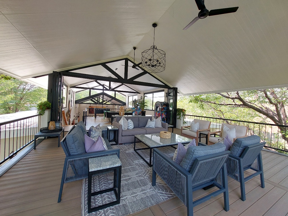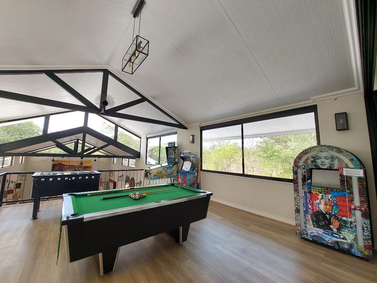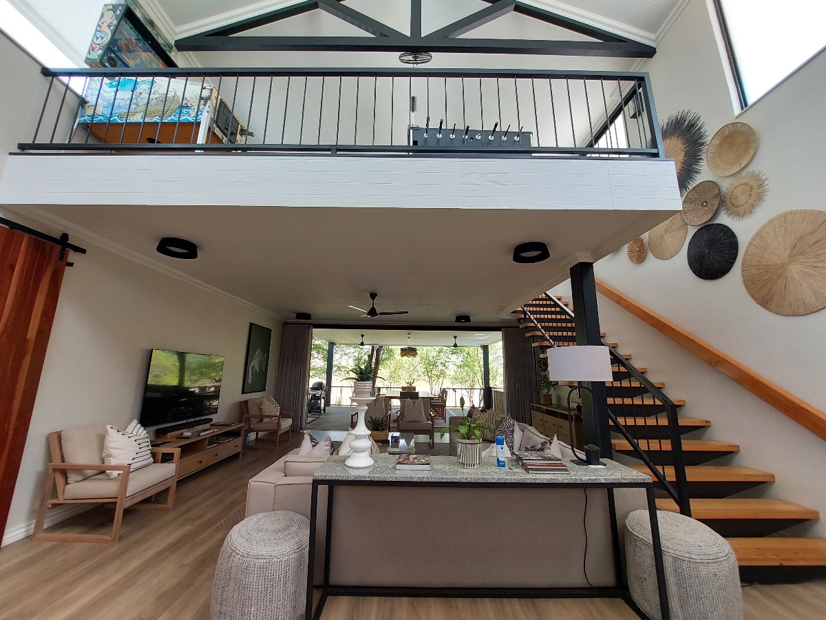 There is a 2nd level floor, accessed by a wonderful staircase, which is where the games room and another seating area (commonly known as the sunset lounge) are located. This is also attractively set out in an open-plan format, making it a popular place for families to hang out. The games area has a pool table, jukebox, pinball machine, foosball table, and even an arcade video game machine – ideal for keeping kids and teenagers busy!