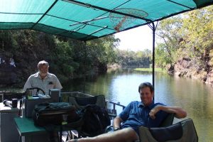 So, Woody and I set off a few weeks ago across the lake, to stay at a lodge called Musango Safari Camp, it was a big first for us as we were taking a borrowed boat all the way to the Bumi Bay area. Neither of us had ever done this before but it’s a lake … how lost could we really get, we thought? Haa! Famous last words. After being on the water for about two and a half hours we knew we had to be close, but alas, we could not spot the camp. Luckily for us we ended up in the Bumi Hills Harbour, and their staff very quickly pointed out our destination, which wasn’t actually that far off. Although a little late, we arrived safely at Musango Safari Camp and were in time for Woody to head off with the owner, Steve, on a Sundowner Cruise with some newly arrived biker guests who had ridden all the way up from South Africa on the back roads!