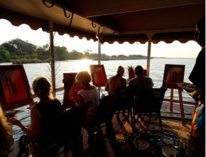Just after sunrise, this exclusive breakfast cruise takes you on a 3 hour workshop on the Zambezi River. After a short cruise upstream, the boat will be moored at a chosen site. The guided art class will begin right after, with a local Zimbabwean artist showing you how to interact with your surroundings on a personal level. Your brush and paints in hand, absorb and capture the ambience of the Zambezi. Allow your sketchbook or canvas to become a visual diary of your African experience.