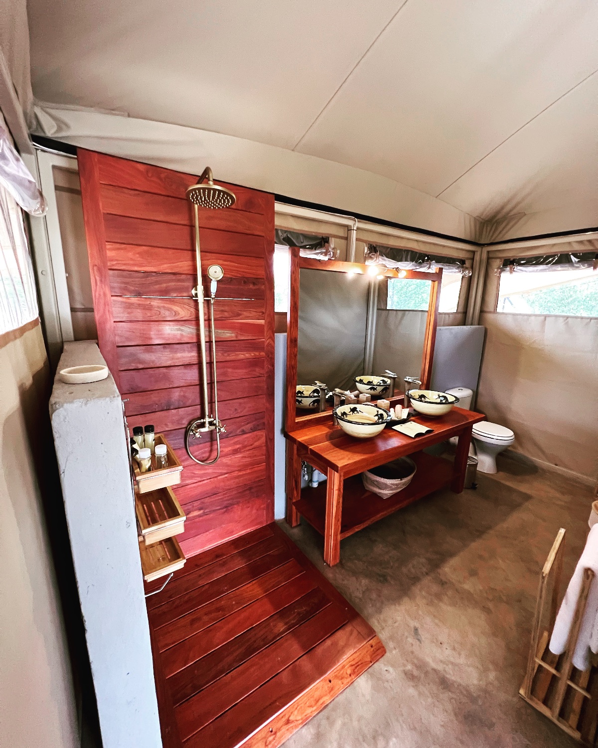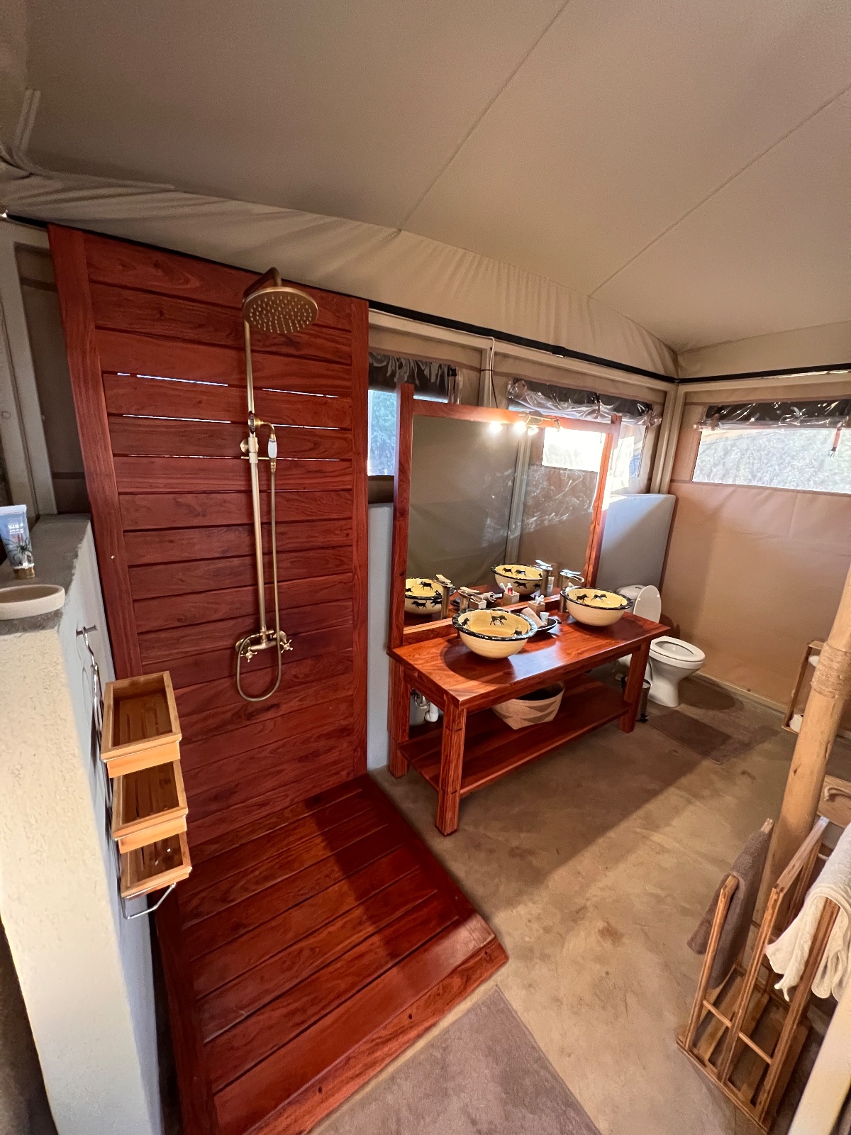 Camp Chitubu has 7 Bedouin style tented rooms in total, 6 are double/twin en-suite tents, while the 7th is a Family tented suite. Each en-suite tent has the following amenities: