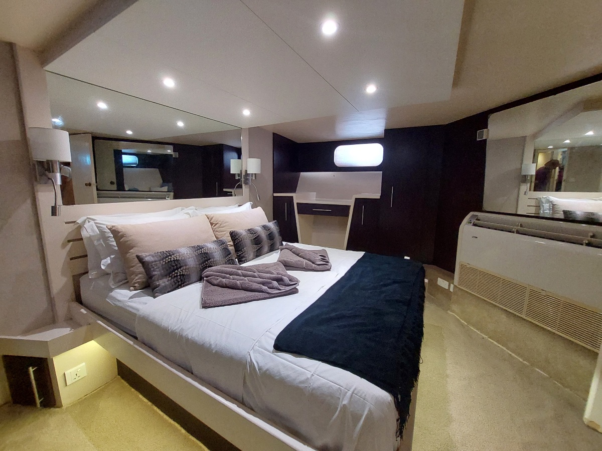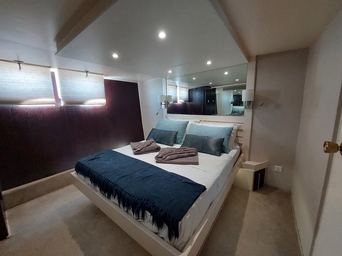 The whole boat has removable mosquito netting including both deck areas. All the cabins, as well as the inside salon area have air conditioners. There are also remote controls for the air cons. There is a large ice maker on board for guests enjoyment.