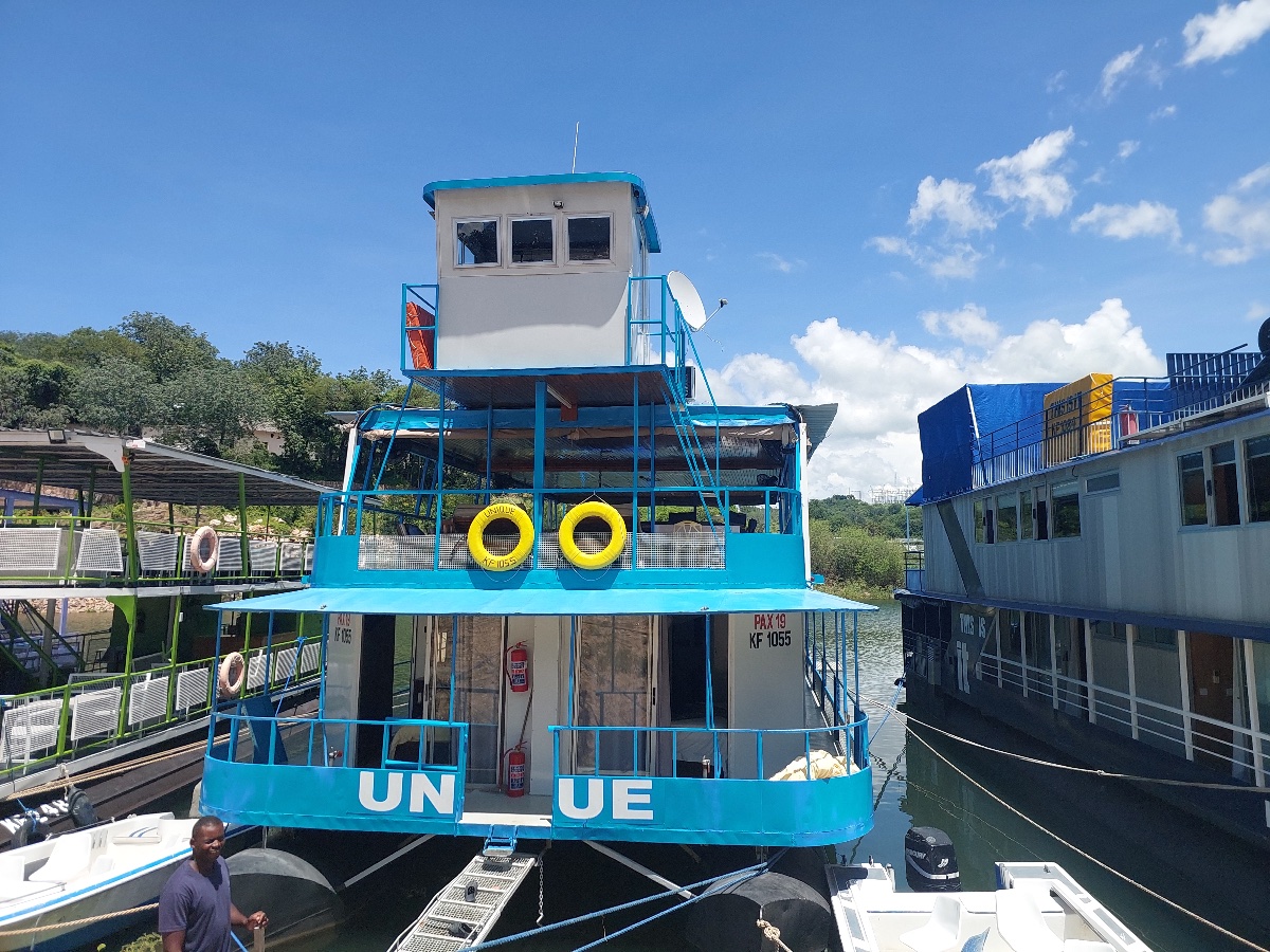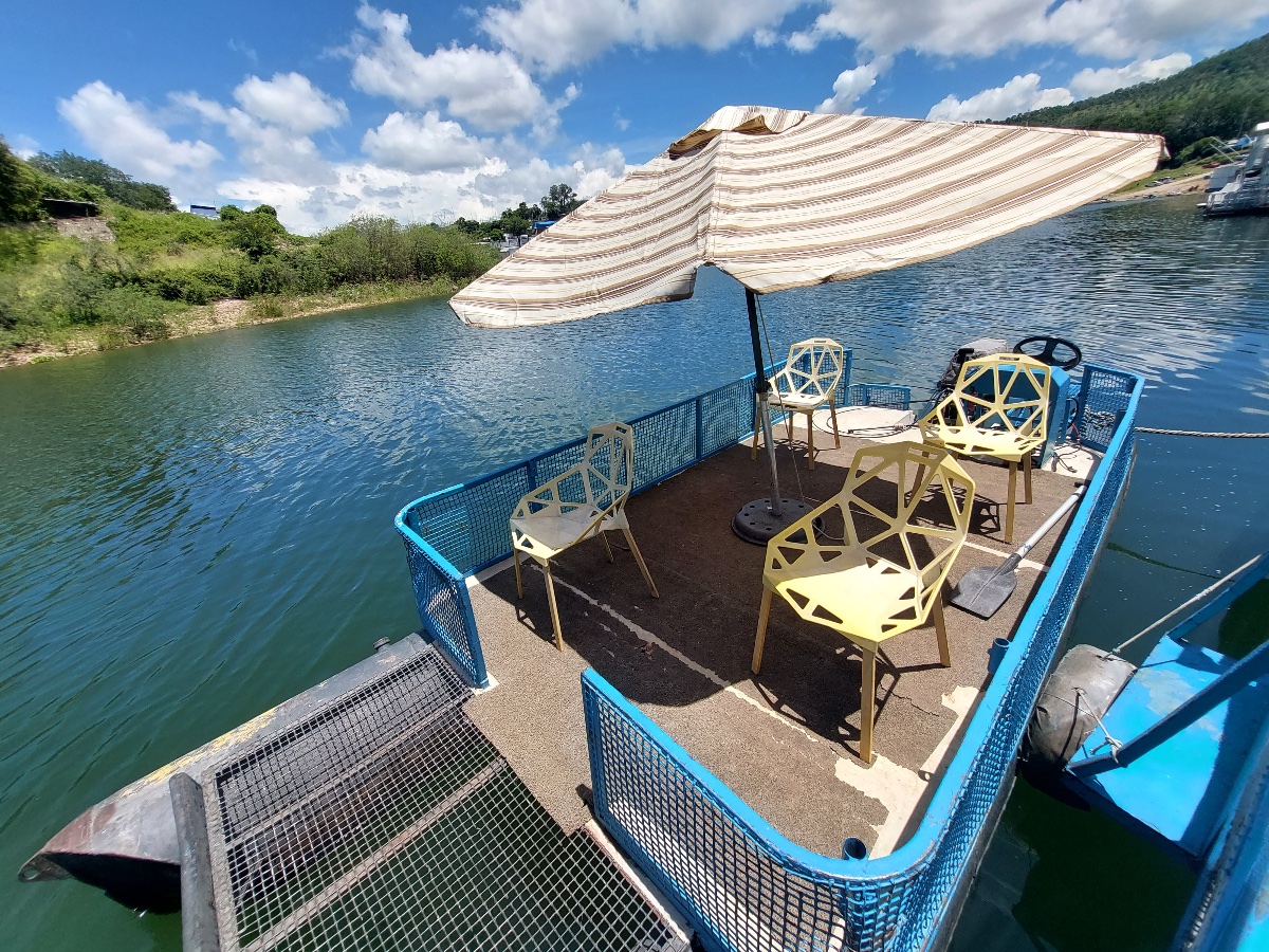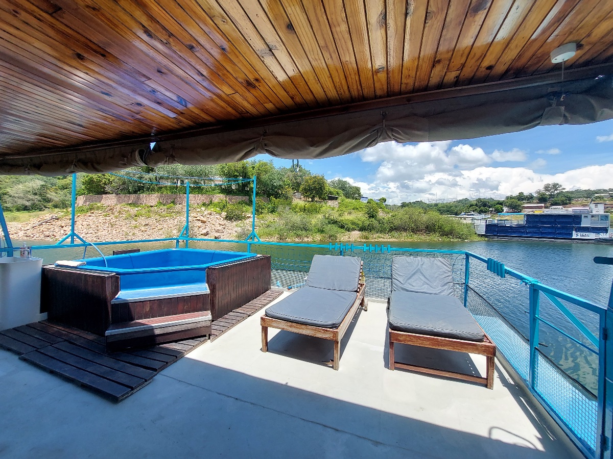 The boat is accessed at the front by a retractable walkway onto a landing area and then onto the side walkways to the cabins and kitchen. The is a charcoal braai for guests convenience – please bring your own charcoal.