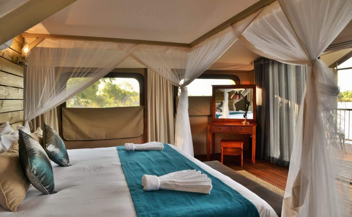 Jackalberry Chobe is located on the banks of the Chobe River, in the border town of Kasane in Botswana, in the heart of the KAZA region, where 4 countries meet (Botswana, Namibia, Zambia and Zimbabwe). Jackalberry is a fully inclusive tented lodge that has been beautifully built with wooden decking and walkways connecting the rooms to the main entertainment area, offering the most gorgeous views of the Chobe River from the privacy of your own bedroom.