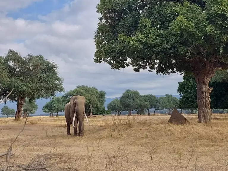 Kavinga Safari Camp is located in a private concession within the southern boundary of Mana Pools National Park, approximately 1 kilometre upstream of the confluence of the Ruckomechi and Chiwuye Rivers. The camp overlooks the dry Ruckomechi riverbed and is set against the extraordinary backdrop of the Zambezi Escarpment.