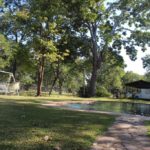 There are 20 lovely shaded camping sites (max of 4 people per site) with power and water points and clean ablutions. The camping area is in a very quiet setting and has a playground for children and big areas to run around in. There is a swimming pool on site.