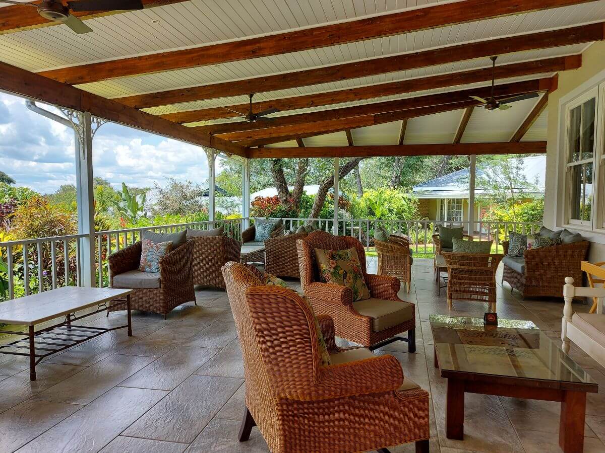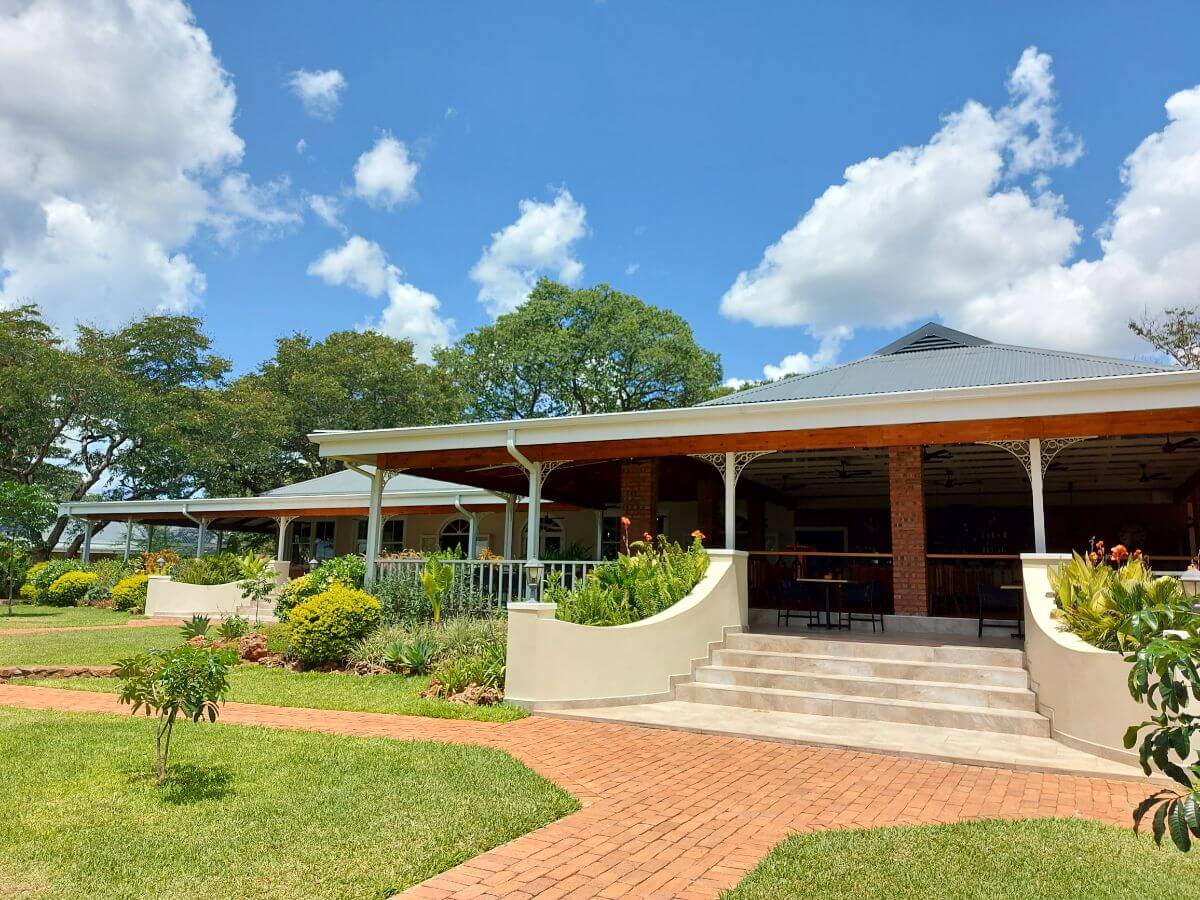 The lodge is situated in the suburbs of Victoria Falls city, just over 3.5 kilometres walk from the mighty falls themselves.  Pioneers has lovely green lawns, gardens that are beautifully kept, and not one but TWO swimming pools available for guests to use.  The main building houses a wonderful wraparound terrace with a soft-seating area, bar, coffee station and alfresco dining section. For those not wanting to sit outside, there is also an elegant inside lounge and a beautifully decorated dining room.  In addition to these a day spa, TV/meeting room and curio shop (conveniently located in the reception area) are also on the property. All of the facilities are for residents of the hotel only.