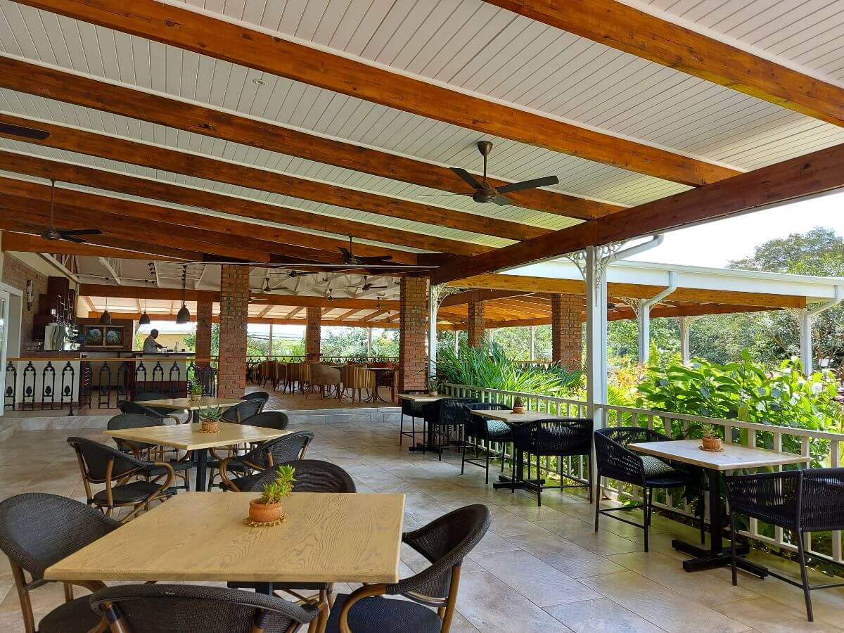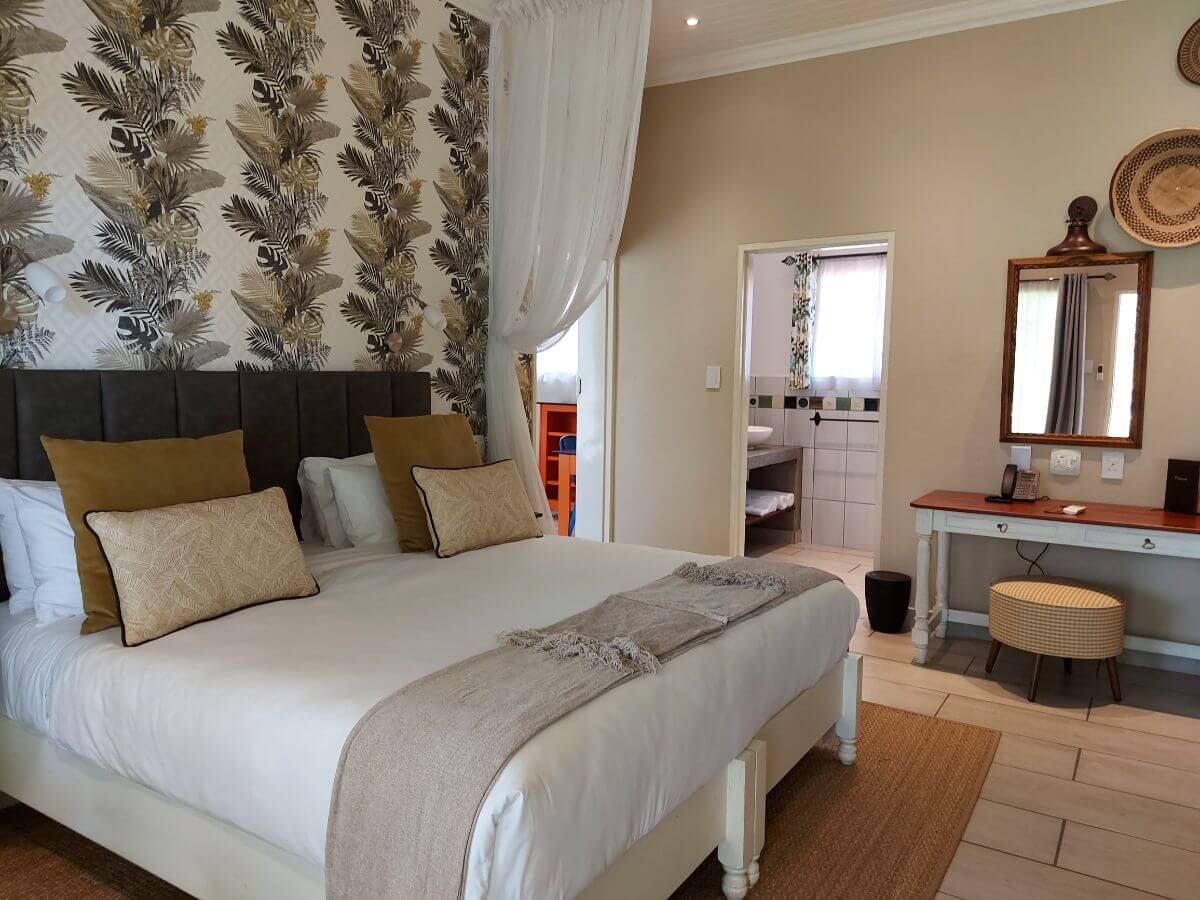 There are 50 rooms in total, each looking out over the gardens, located on 2 different levels.  All the rooms are en-suite with double vanities and a shower.  The beds can be configured on request to either double or twin.  Four of the rooms are specially designed family rooms. These have an annexe off the main room with two single beds in it, and these are decorated with kids in mind. Cots are also available on request.
