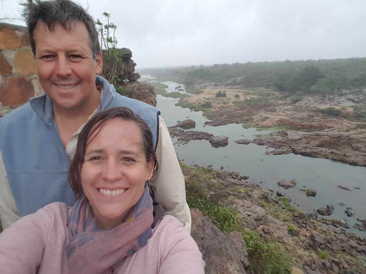 Sadly, on our last day the weather really did change and we awoke to rain on the rooftop. We were very happy for the rain, as the park desperately needed it, but the game viewing was not as good due to this. We had not packed enough warm clothing – picturing a holiday in Gonarezhou in October which is typically in the 40 degrees marker. We had just taken a couple of light jackets, to be honest we were also packing in 40 degree heat when we left Kariba a week or so earlier, so to think about packing big jackets was a non-starter. We were still determined to get out and about and see what this side of Mabalauta had to offer and we had a nice drive to the Rossi Pools and Muwatomba sites. We even saw a bit of game, including a beautiful male giraffe very close to the road. The chilly weather eventually got to me, and I caved, and much to Woody’s amusement asked if I could add his work jacket to my layers of clothing? He made sure to take a photo of this not very fetching attire, but I really didn’t care as I was so cold!