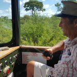 When we got to Dete Station we were extremely fortunate, in that on that particular transfer day, we were the only ones on the train! This enabled my husband to spend one on one time with the drivers: Enock and Joseph. Enock was the pioneer driver for the Elephant Express, and before that, he worked for the National Railways of Zimbabwe for 33 years, so he has many many hours of experience. We were also met at the train by our guide for the duration of our stay, Aubz, who served us a nice cold lunch and even nicer G & T’s along the trip!
