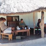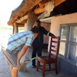 We did manage to do the village visit and met with the village headman, Mazai, and his wife Spiwe with their little girl, fittingly named “Lastborn.” Mazai’s village is made up of 94 homesteads, and the villages grow dry-land maize, watermelons and pumpkins. Some villagers also raise cattle and chickens, but the chickens have a hard time surviving, being so close to the national parks and all the birds of prey which catch the chickens as easy prey. Mazai himself is a self-taught carpenter, so has that as an added income. It was very interesting to have a tour of his homestead, and see how Spiwe makes maize-meal out of the maize once reaped, and see how talented Mazai is in his woodworking. He has been contracted to make various furniture for the lodges nearby, so we knew it was very possible when we had lunch that day that we were sitting on his hand crafted chairs!