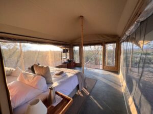 All Lodge Standard Rooms and Lodge Waterhole Facing Rooms have 2 three-quarter beds that can be converted to a king size bed.  All beds are extra length. The 6 Lodge Waterhole Facing Suites all have king size beds.  All rooms are non-smoking, with their own private patio and have a mini-bar (which can be stocked on request for the guest’s account), a digital safe, a telephone, international multi-sockets/charging points, air conditioning, a ceiling fan, a hair-dryer, a mosquito net, guest amenities and complimentary tea/coffee making facilities.