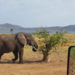 Both times we were at Wild Heritage the elephants came to visit. The first time I hadn’t been at Kingfisher long when Richard the caretaker called to warn me that there was a huge elephant making his way over to the lodge. Although we see a lot of elephants in Kariba, it is not often that you see how large they are in comparison to your vehicle! He really dwarfed my car and after snacking on a few branches on a tree nearby he then helped himself to the neighbouring house’s pot plans! Later, he walked around to the front of the lodge and calmly carried on his way.